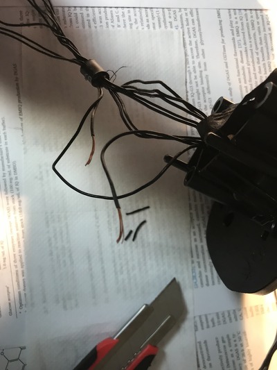 중간을 끊고, 피복만 벗겨냅니다. 피복이 아주 얇으니 조심필요.