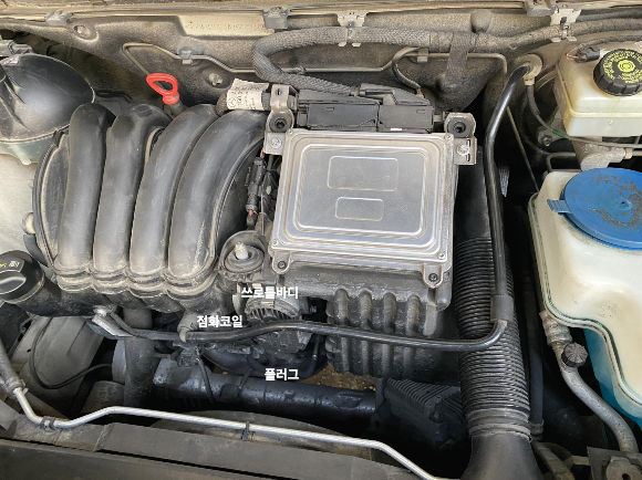 관심있으신 분들은 알고 있으시죠. 마이비는 플러그가 엔진룸 바닥가까이에 있습니다. 엔진블럭 앞쪽으로 충분한 공간이 있어서 자가정비가 가능합니다. 팔이 긴 사람이 조금 더 유리할 수 있겠네요. 플러그를 복스로 빼는데 혹시 각도가 안나올 줄 알고 셀프정비소 매니저님께 플러그용 특수복스(다관절)를 받아서 해보고 일반 롱복스로 해봤는데 롱복스로도 충분합니다. (롱복스16) 점화코일에 접근하기 위해서는 쓰로틀바디를 분리하는게 매우 유리합니다. 쓰로틀바디도 청소하는것이 일거 양득입니다.